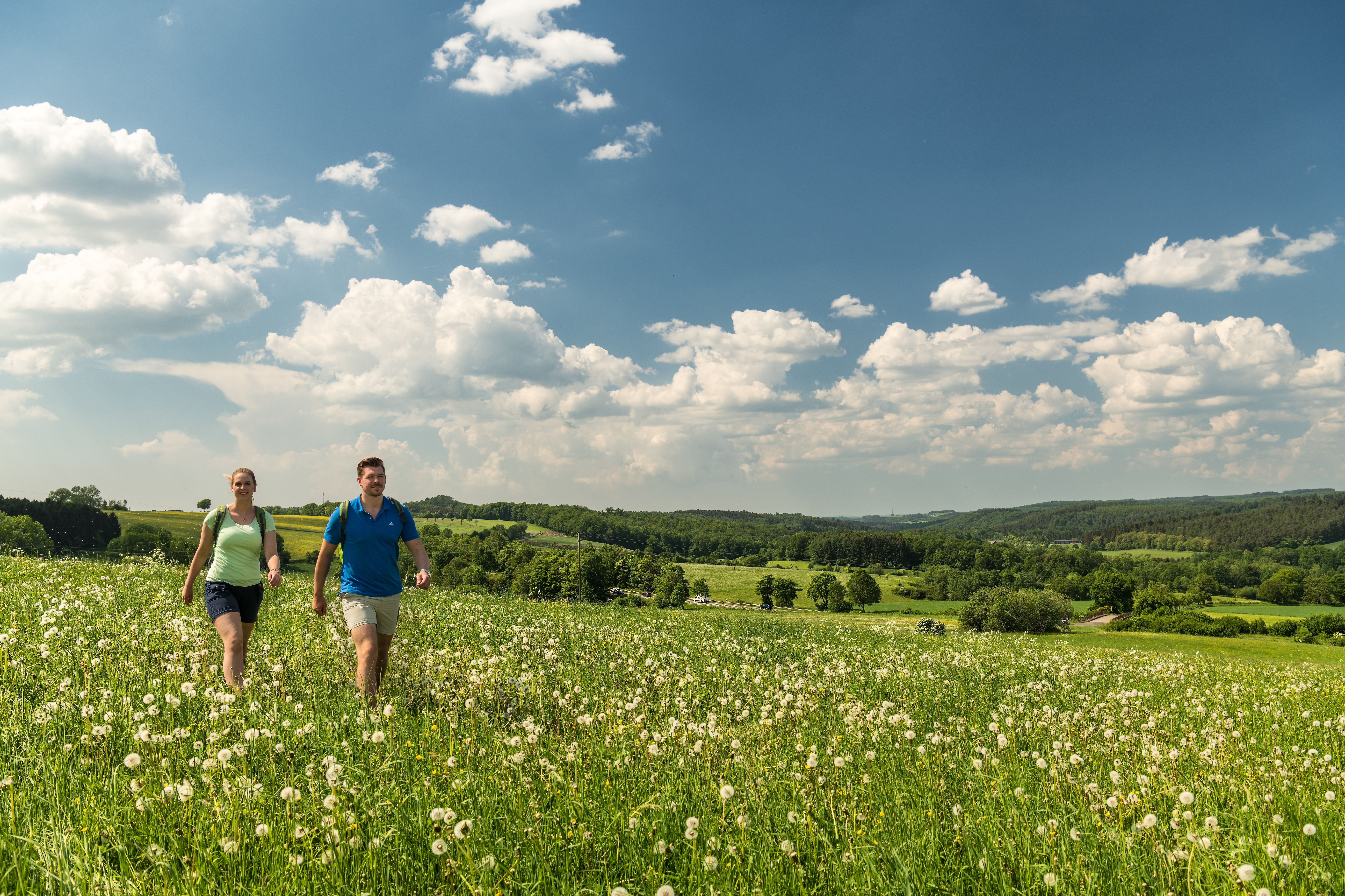 From the Tourist Information Hachenburger Westerwald we cross the Alten Markt and then walk through the Obergasse to the inn "Zur Sonne." There we cross the L281 country road to the Burggarten and continue right to the Westerwald Landscape Museum. Here we cross the L281 again (pedestrian crossing) and follow the Dehlinger Weg to the left. After about 70 meters we turn left (Dehlinger Weg) and are on the 7 km route. It is about 50 m further until we reach the Jewish cemetery. After the Jewish cemetery we continue to follow the signage to the Langen Schneise, where we turn right towards Gehlert. We cross the L288 and after about 600 m at the end of the forest turn right in the direction of Hachenburg. On the asphalt road we go left and after about 600 m we meet the 12 km route again. From here you can see Hachenburg Castle. We continue straight ahead via Birkenweg past the DRK hospital on the right heading towards the swimming pool and boating pond to the inn "Zur Sonne." Here we turn left back to the starting point Alten Markt and Tourist Information Hachenburger Westerwald.