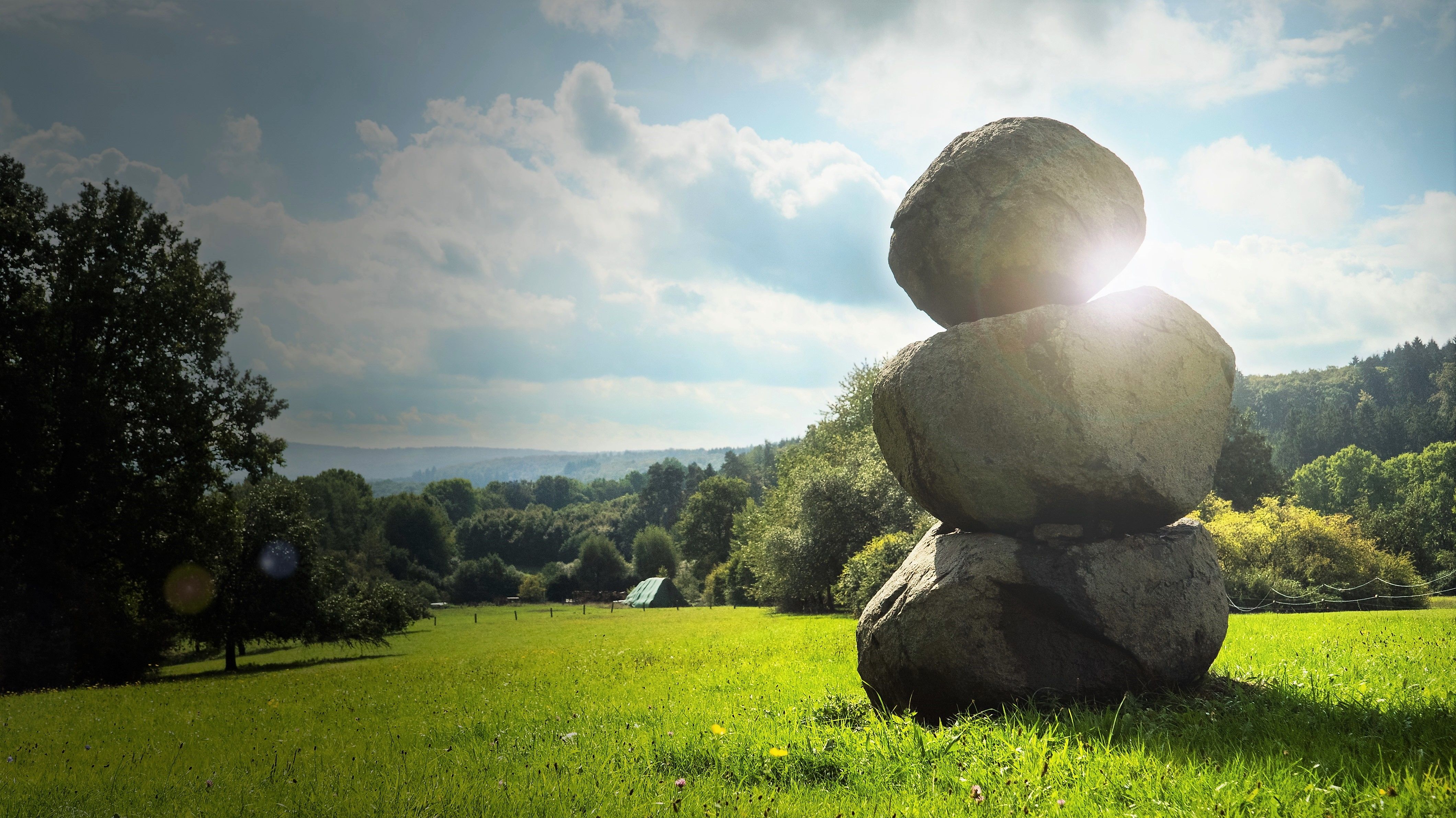 I start from the car park at the Outdoor Centre Lahntal, pass through the viaduct of the former Ulmtal railway (now Ulmtal cycle path) and reach a very beautiful forest area. It is quiet around me and I can relax and recharge here. The route leads uphill at times, but the effort is worth it: At the highest point I have an unobstructed view of the abandoned village Schönhausen. This village was once a victim of the plague. My path takes me past fields and meadows and I first circle the Siegfried Fietz sculpture park. I also pass the solar park and a lovely orchard meadow. Then I stand in front of the park's main entrance, which unites numerous sculptures under beautiful old trees. The further path leads me back to the Outdoor Centre Lahntal with playground and many animals via the track of the former Ulmtal railway.