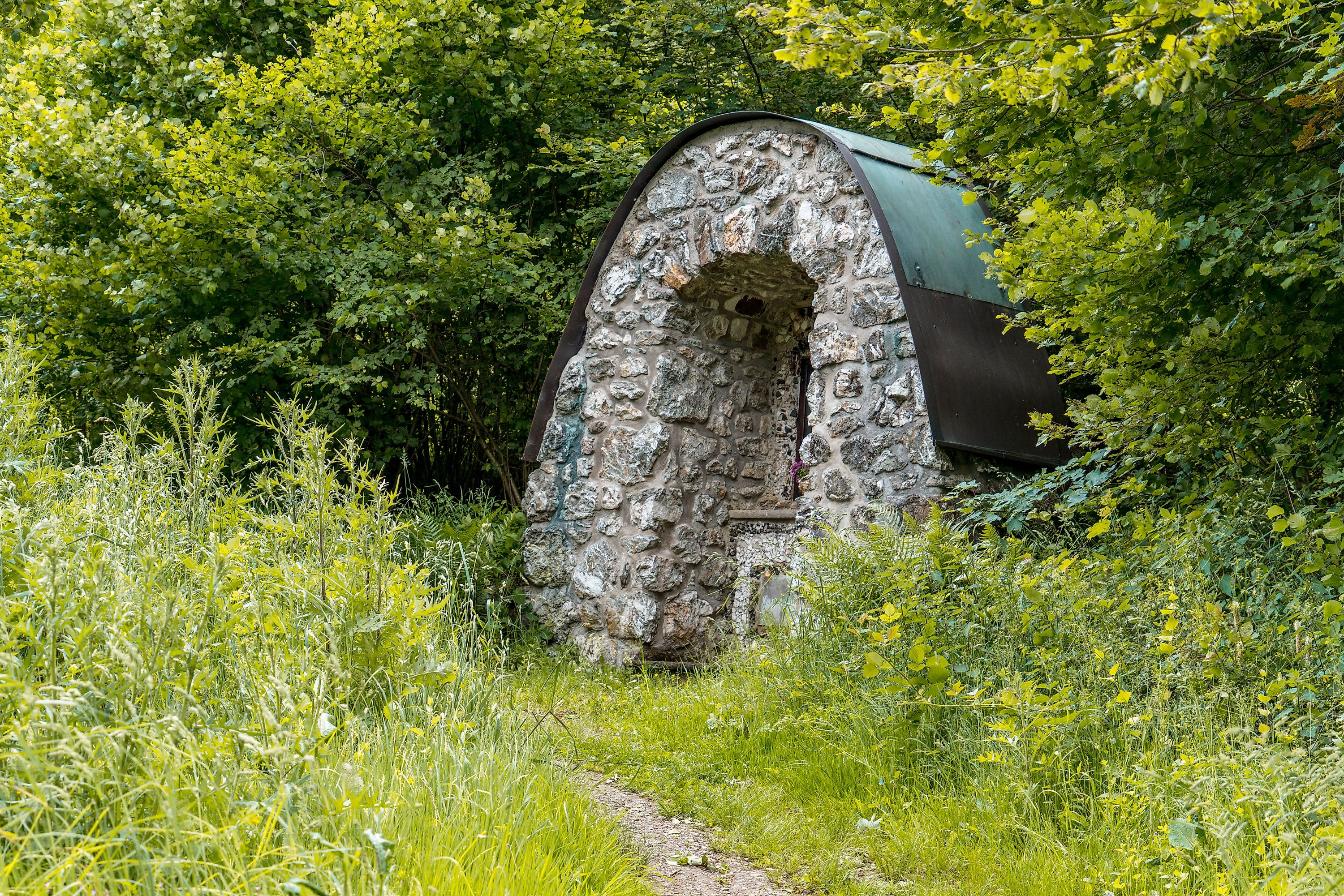 A short connecting path leads from Alsdorf station to the main path, which crosses the Heller and leads into the Imhäuser valley. It steadily goes uphill towards Herkersdorf, past fish ponds and moors. It soon becomes steeper, and here you gather all your reserves once more for the ascent to the Druidenstein. For a short stretch, the Natursteig Sieg accompanies the E1, which runs from Sweden to Umbria. A bit of wanderlust arises. Up the beautifully designed Way of the Cross, a pilgrimage route that depicts the Passion of Jesus Christ, you go uphill. Once at the top, it's time to admire the Druidenstein, an impressive basalt cone around which legends and myths revolve. You continue through a bright forest regeneration area towards Offhausen and into the valley of the Imhäuser stream, which you soon leave again. The Ottoturm, which towers over the 405 m-high Kahlenberg, challenges you to a final climb and delights you with a fantastic 360-degree view from 18 m high. Great! Fully satisfied and a bit further on, you leave the main path and follow the connecting path down to Kirchen station.
