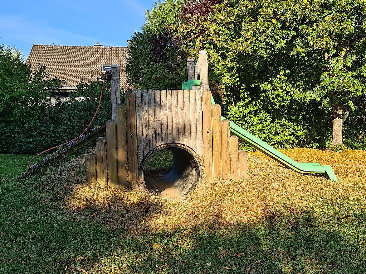 Playground with numerous playground equipment: - Swing - Climbing tower - seesaw animals - Sandpit - Crawling den Seating facilities available. This text was translated with the free translation tool deepl.com.