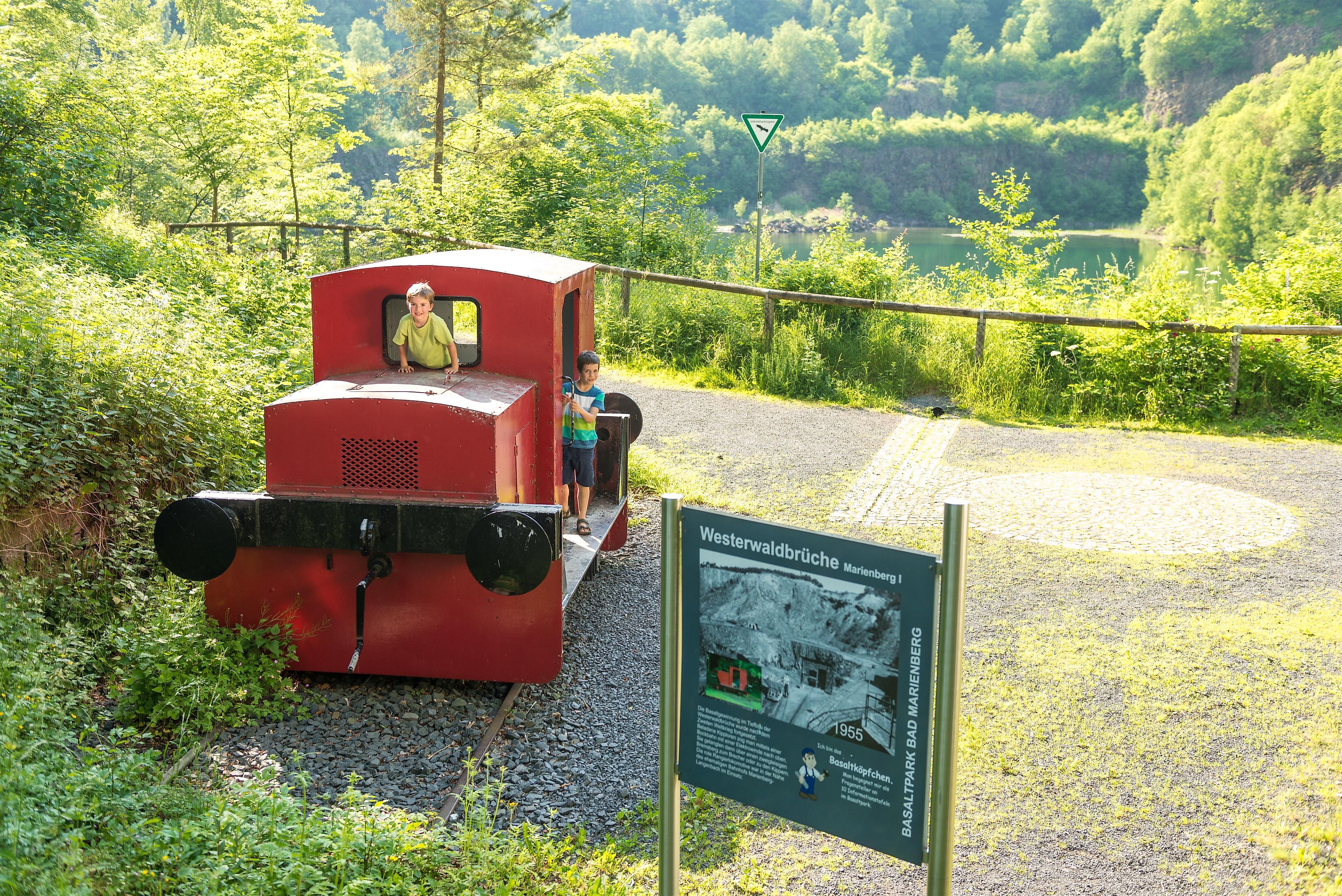 The circular route is about 15.5 kilometers long and partly runs on the old railway track from Bad Marienberg to Nistertal. More precisely, it takes me from Bad Marienberg around the Katzenberg and the Scharfenstein, two impressive mountains of 483 and 454 meters respectively. On both the outbound and return journeys, I pass the Basalt Park with its lake, educational trail, and interesting exhibits. Alternatively, I can visit the falconry in the wildlife park on my right side. Additionally, from the Hedwig Tower, I have a wonderful panoramic view. I visit the connected climbing forest either after the route or on another day, as I will surely spend a few hours there. In Erbach, I can stop for a delicious meal at the Hotel zur Post. Here the chef still cooks regional and international dishes himself. Alternatively, I enjoy the lunch menu at the Wienen butcher's shop in Bad Marienberg.