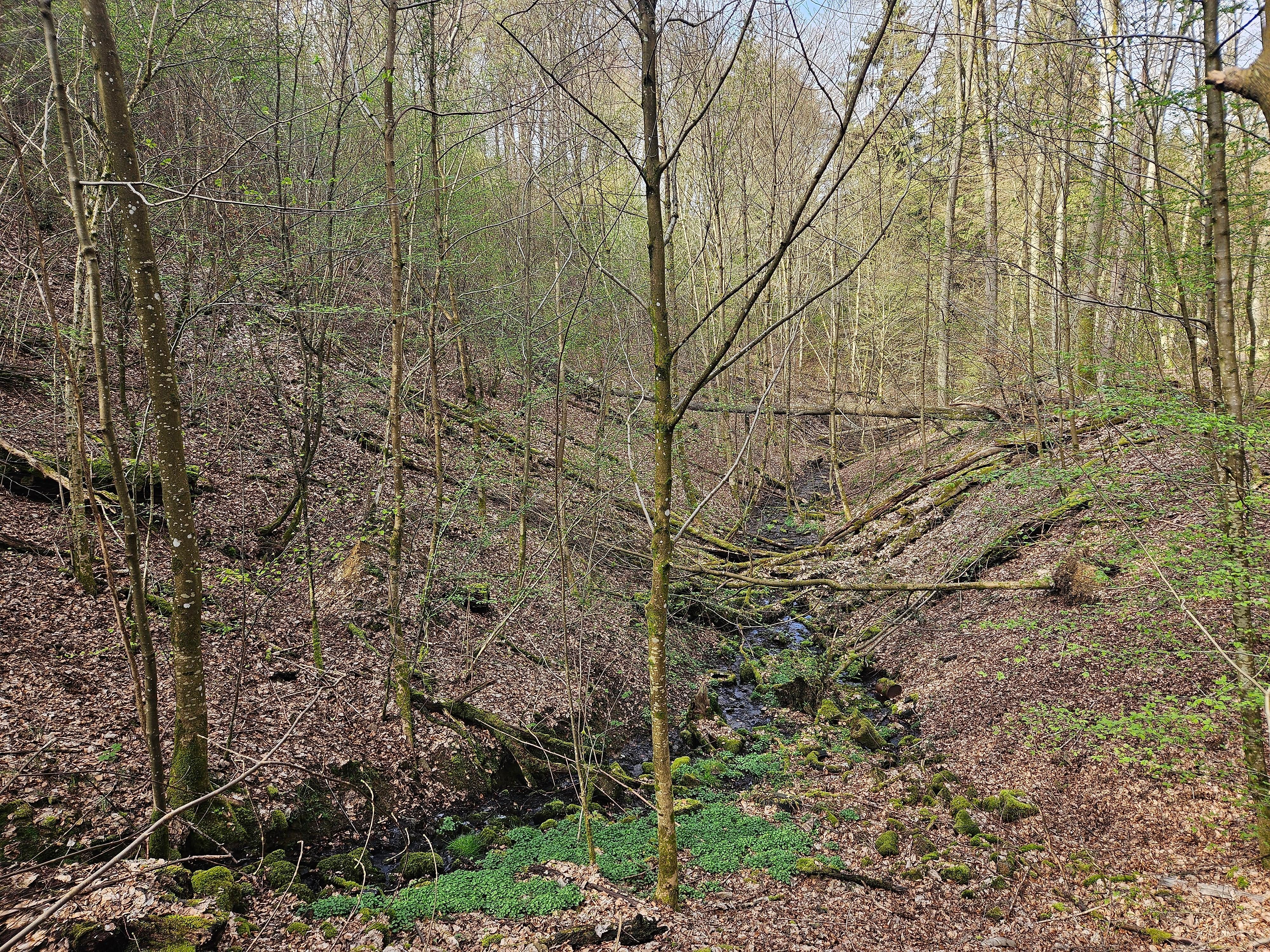 The Little Holzbach Gorge is a natural valley that can be explored along a well-trodden path. It offers rustic trails, small rocks, and the soothing sound of the brook.