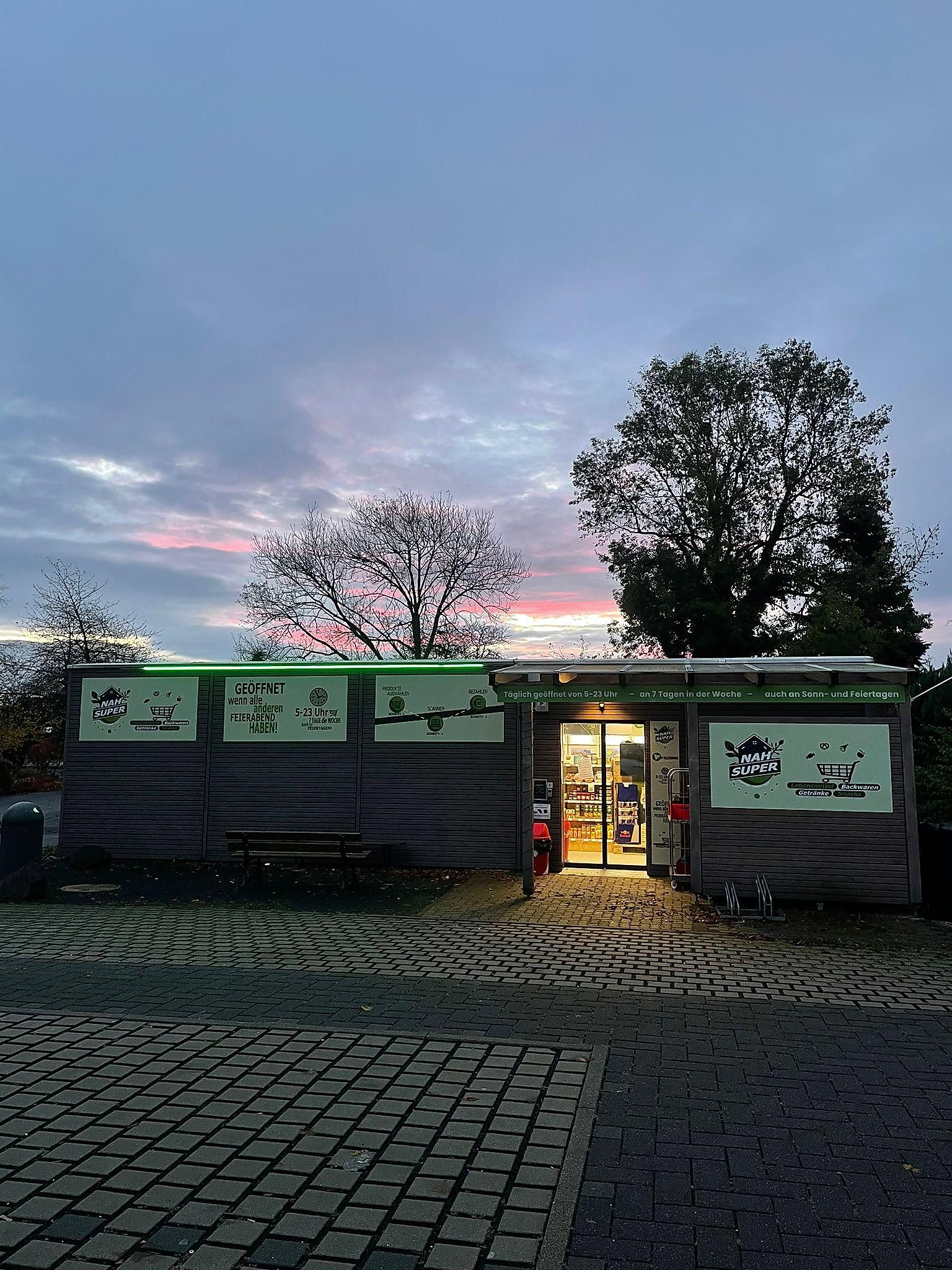 The special highlight – You can shop with us 7 days a week, 365 days a year from 5 AM to 11 PM.We have no sales staff and yet are a completely normal store. Check-out is self-service at the self-checkout, and payment can be made with all common payment methods (debit/credit card, contactless, or with the Nah-Super customer card).