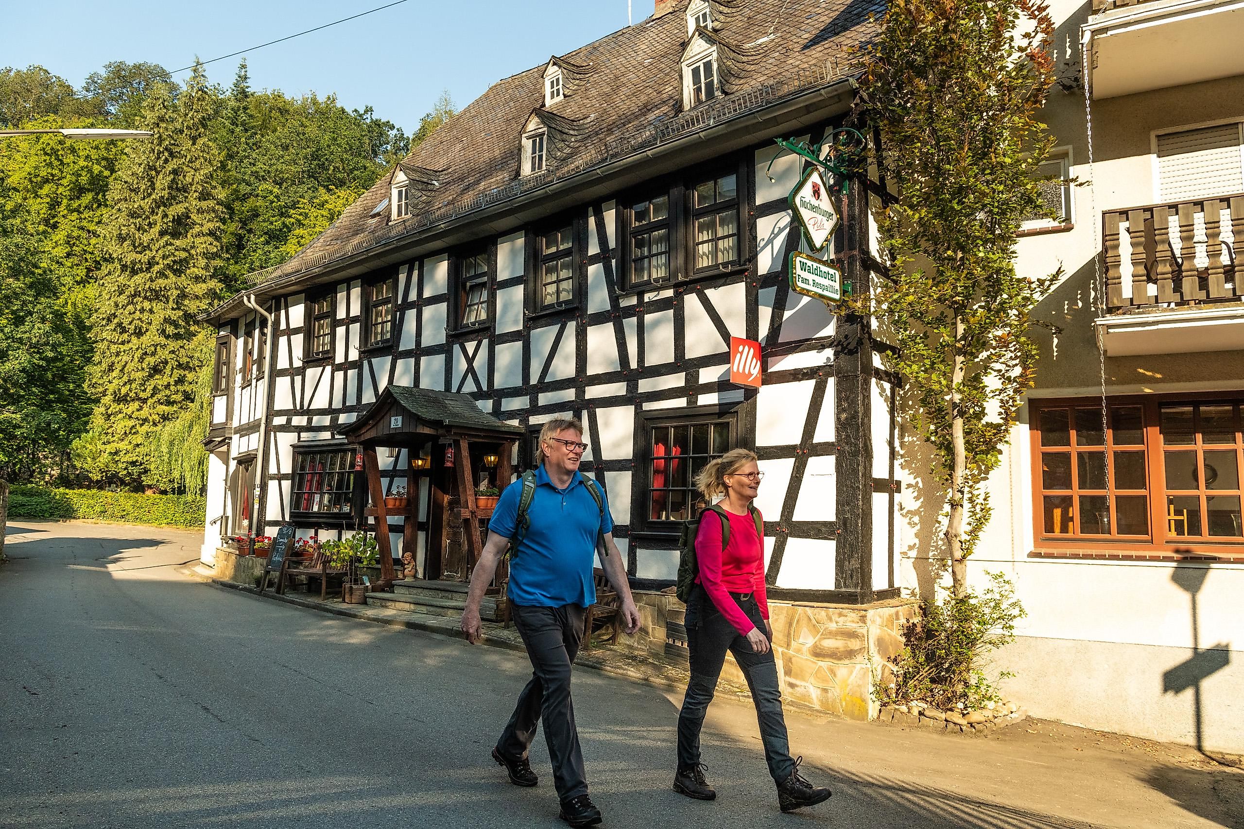 From the station in Ingelbach, first go to the "German Corner of the Westerwald" – an idyllic spot where Kleine and Große Nister flow together. From the viewpoint Spitze Ley, your gaze sweeps over the beautiful landscape of the Kroppacher Schweiz. After these relaxing moments, it gets more demanding with the Weltende nature trail and its partly alpine route. After a steep ascent, you will be rewarded with the Sonnenberg viewpoint. The WesterwaldSteig then leads you over the Sonnenweg to Marienthal with its eponymous monastery.