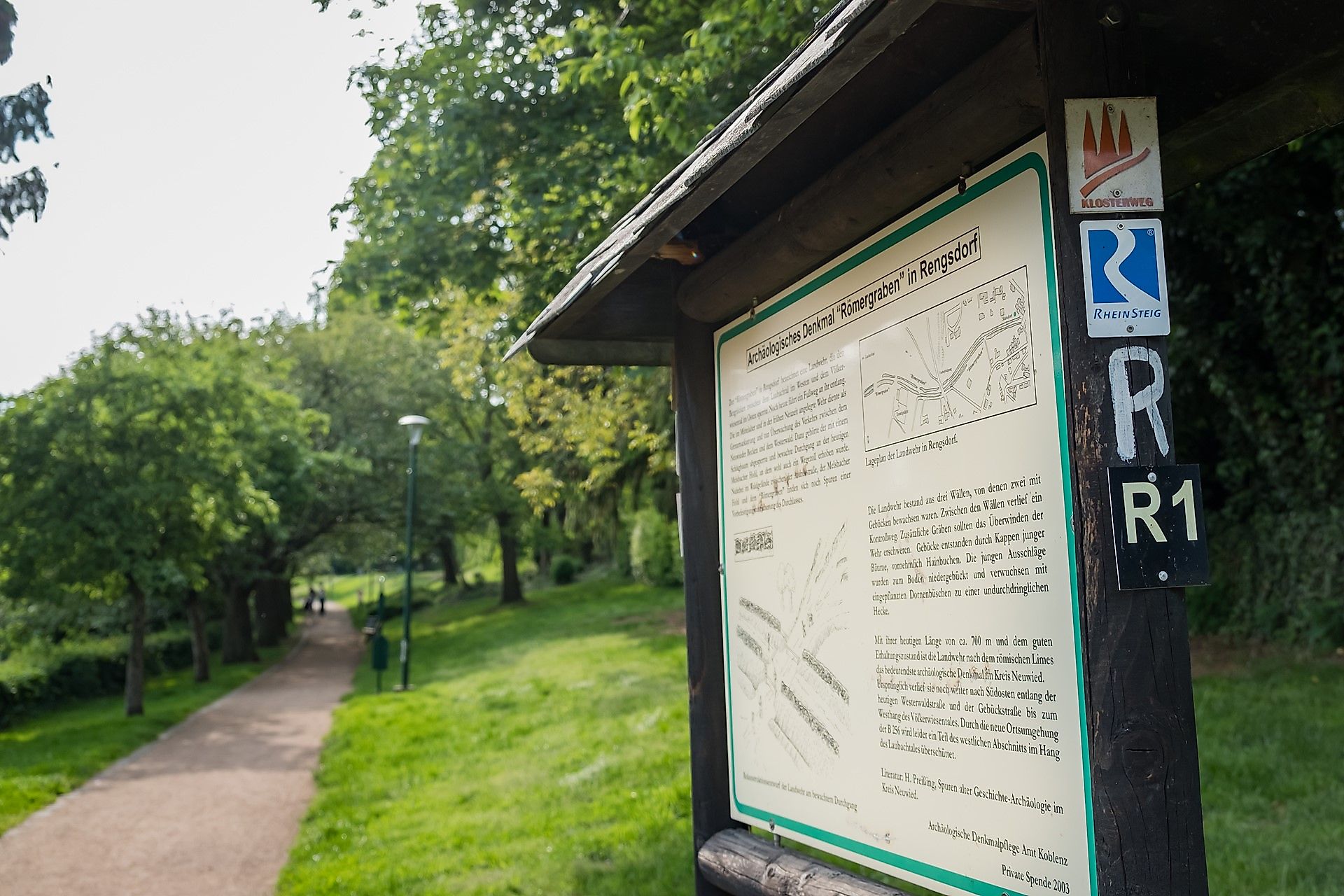 The location of the Rengsdorf region in the Rhein-Westerwald Nature Park - between the Rhine valley and Westerwald plateau - occupies a special position as the "Gateway to the Westerwald" or better said as the "Westerwald balcony." It benefits from the wonderful panoramic views into the Rhine valley and the Eifel, from the idyllic stream and meadow valleys and, of course, from the adjacent elevated areas of the Westerwald.In this attractive spot lies between the RheinSteig in Rengsdorf and the Westerwald-Steig in the neighboring Waldbreitbach the KLOSTERWEG, which guarantees a high recreational value for hiking and trekking enthusiasts over a length of about 18 km. It meets the requirements for premium hiking trails and is authorized to bear the GERMAN HIKING SEAL.The KLOSTERWEG not only crosses a stunningly beautiful landscape with wide views and gentle hills, with green meadows and shady forests, it also invites on both sides of the path to stop and enjoy in various ways.