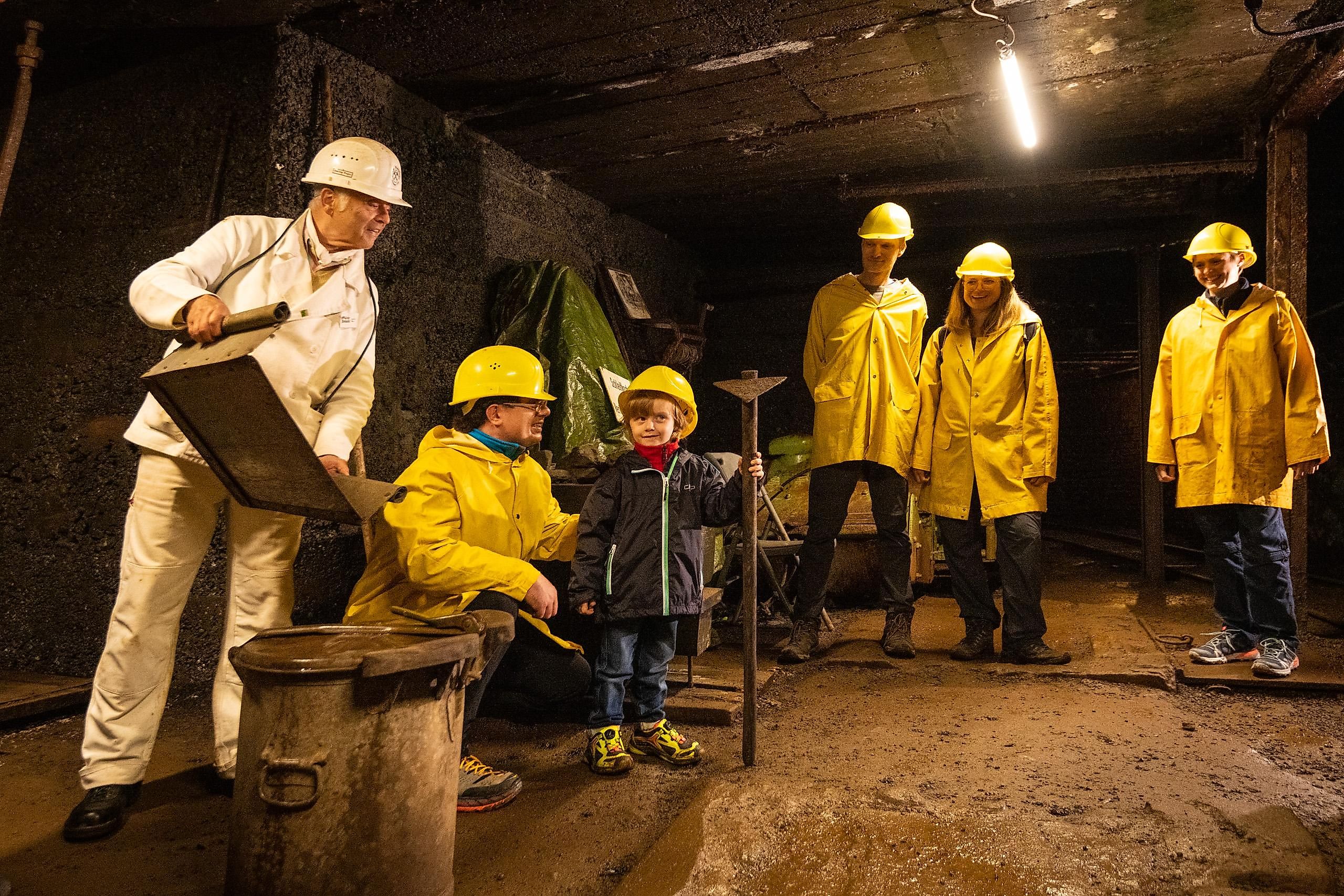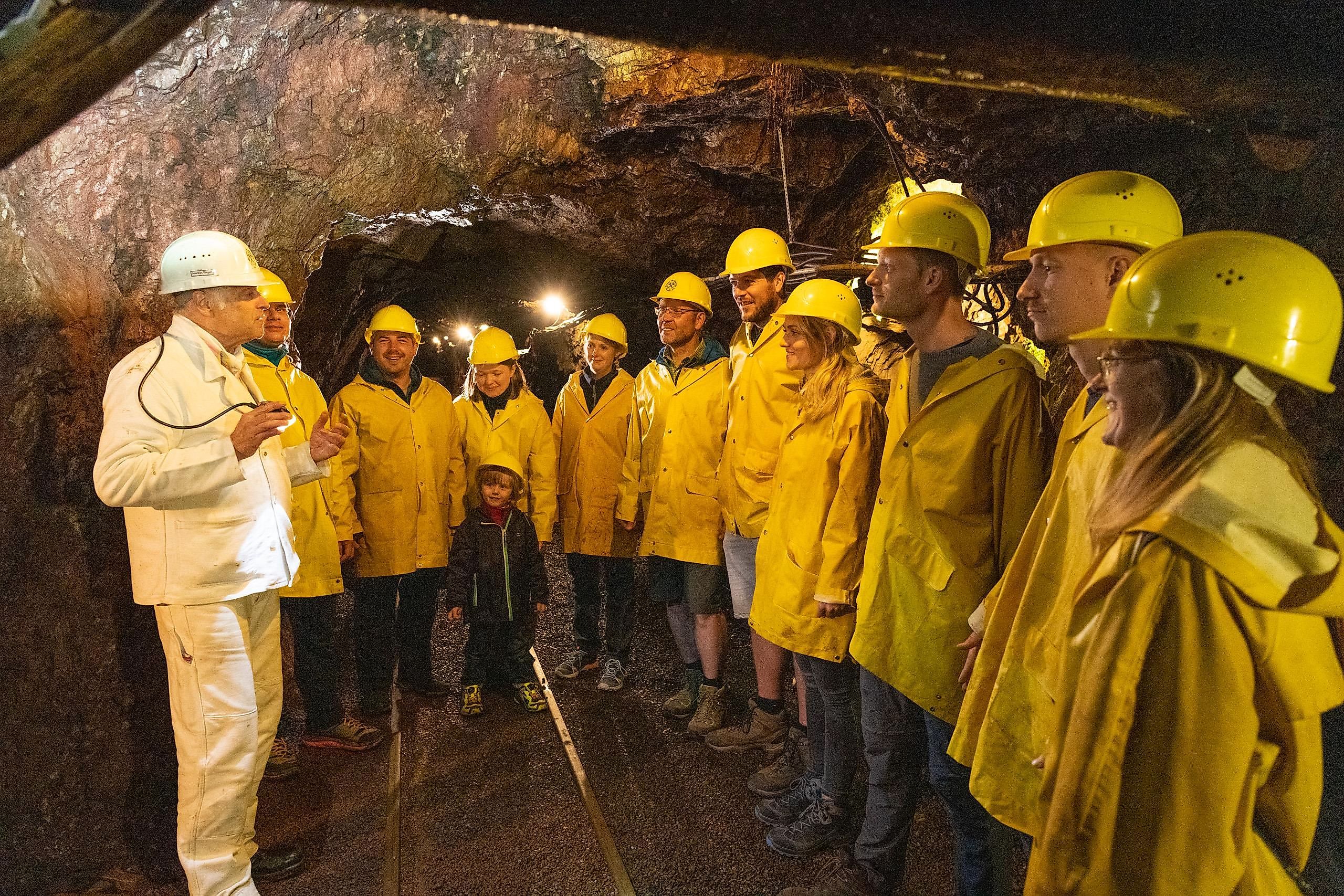 In de mijn is het max. 10 °C, dus warme kleren zijn aanbevolen.