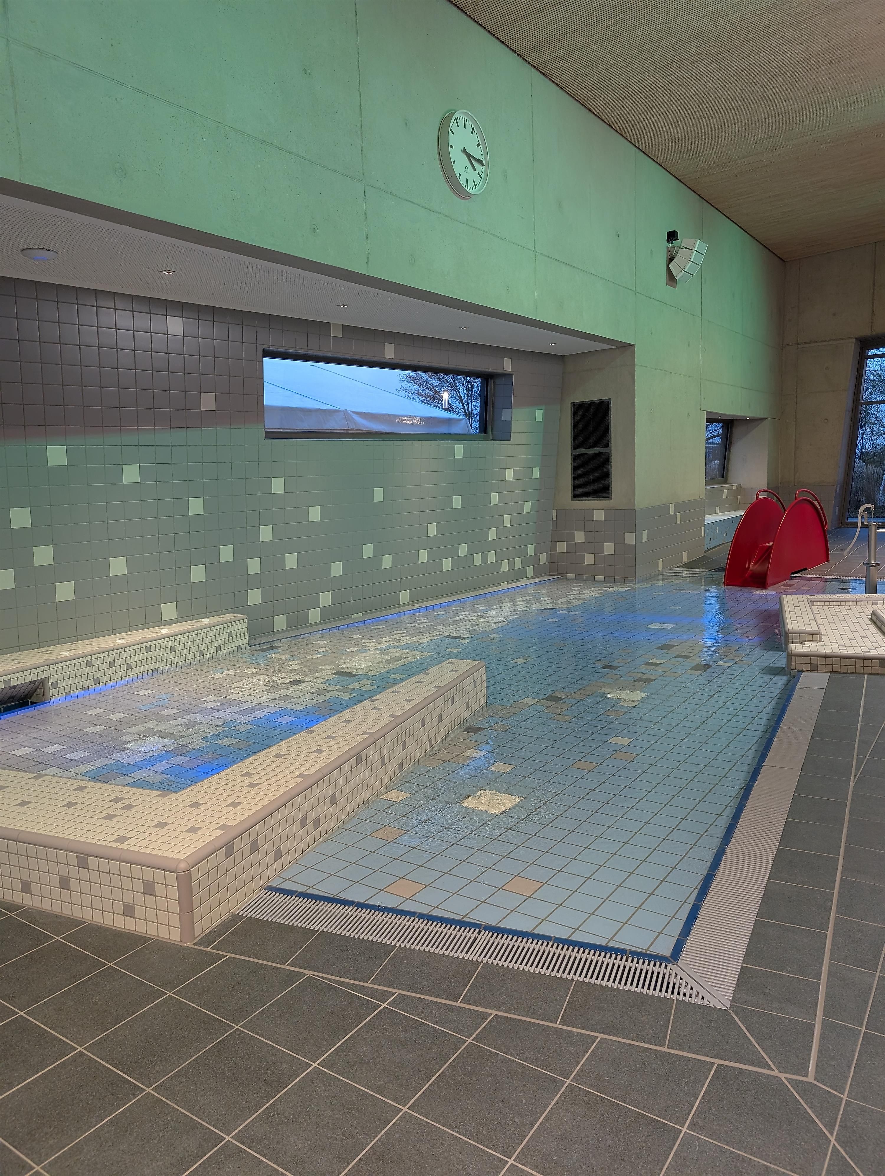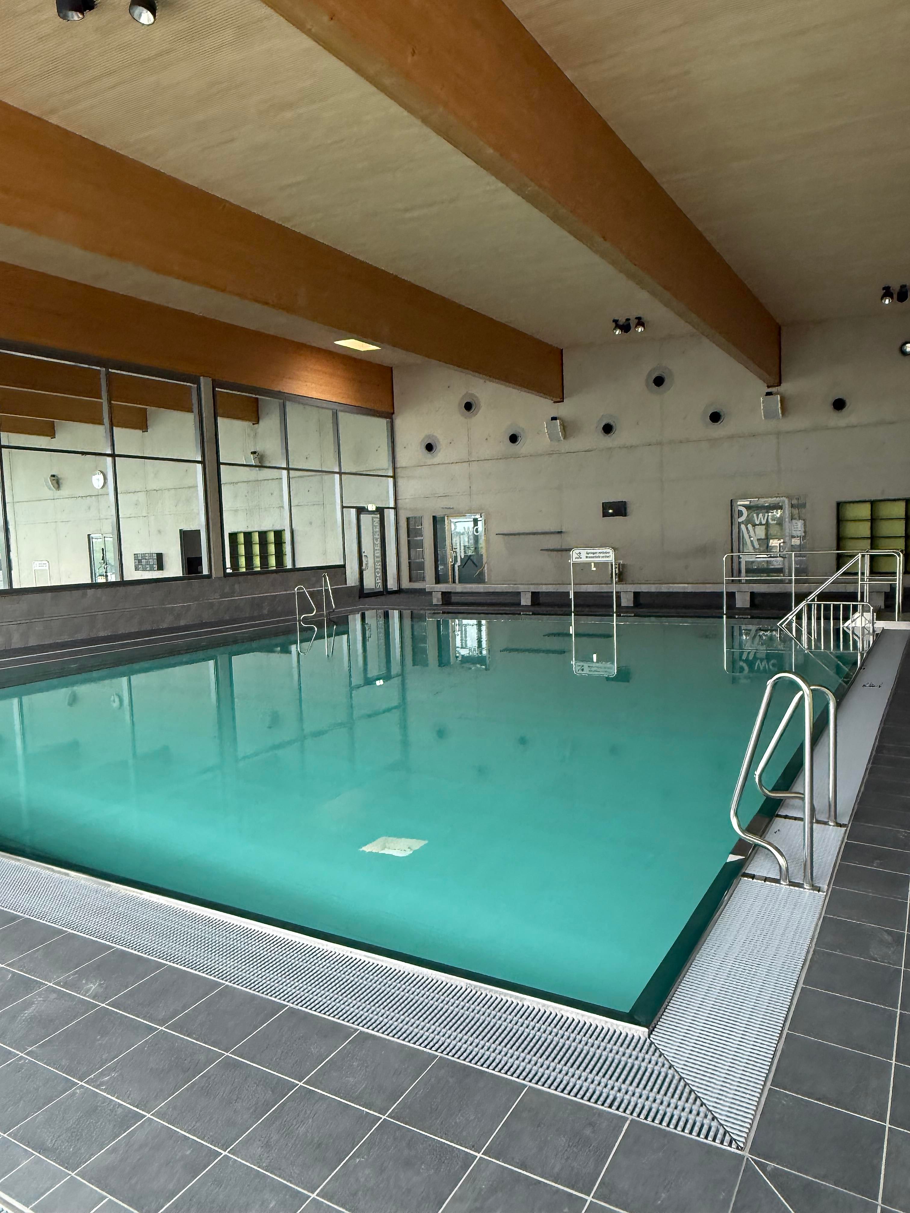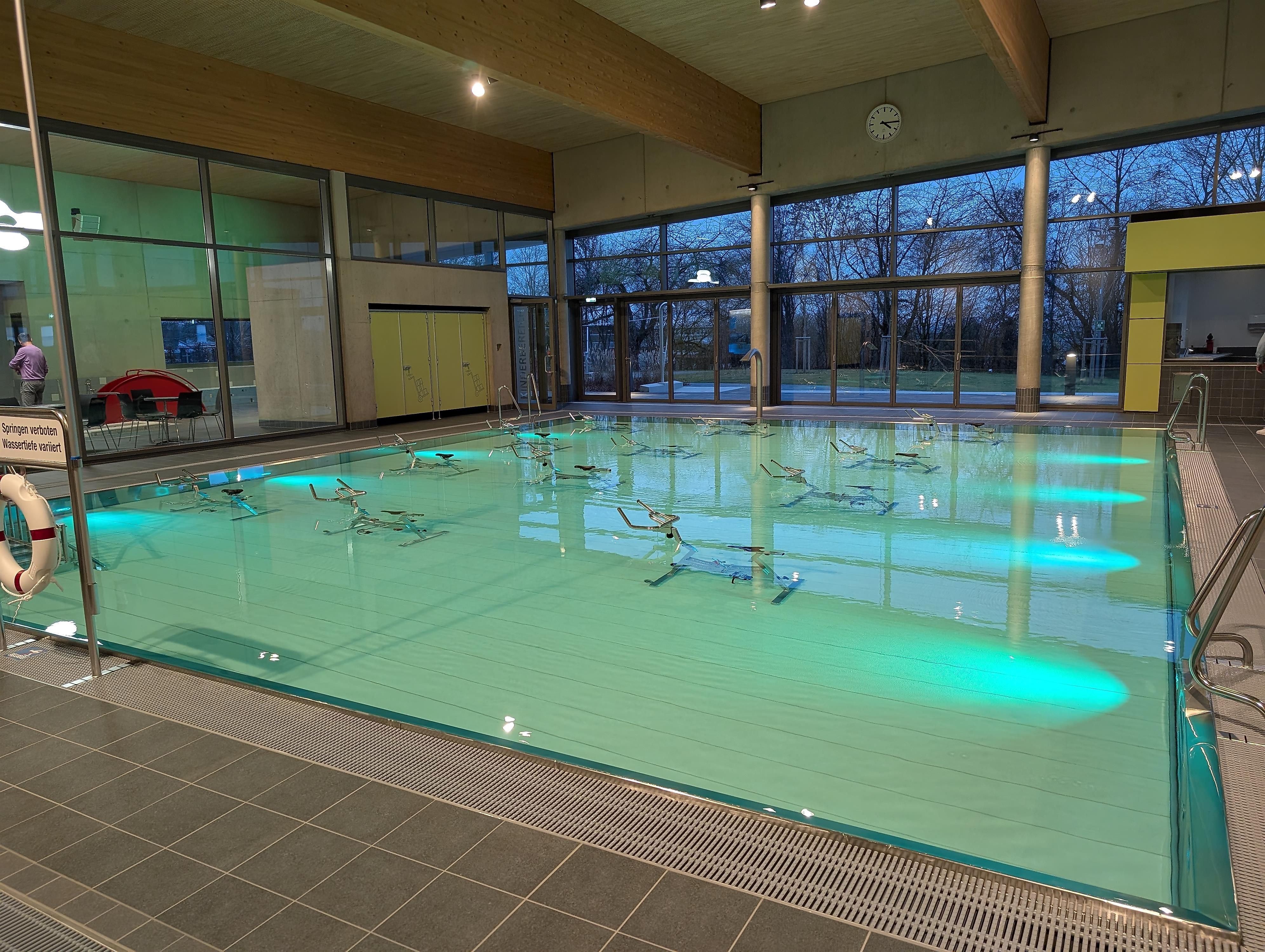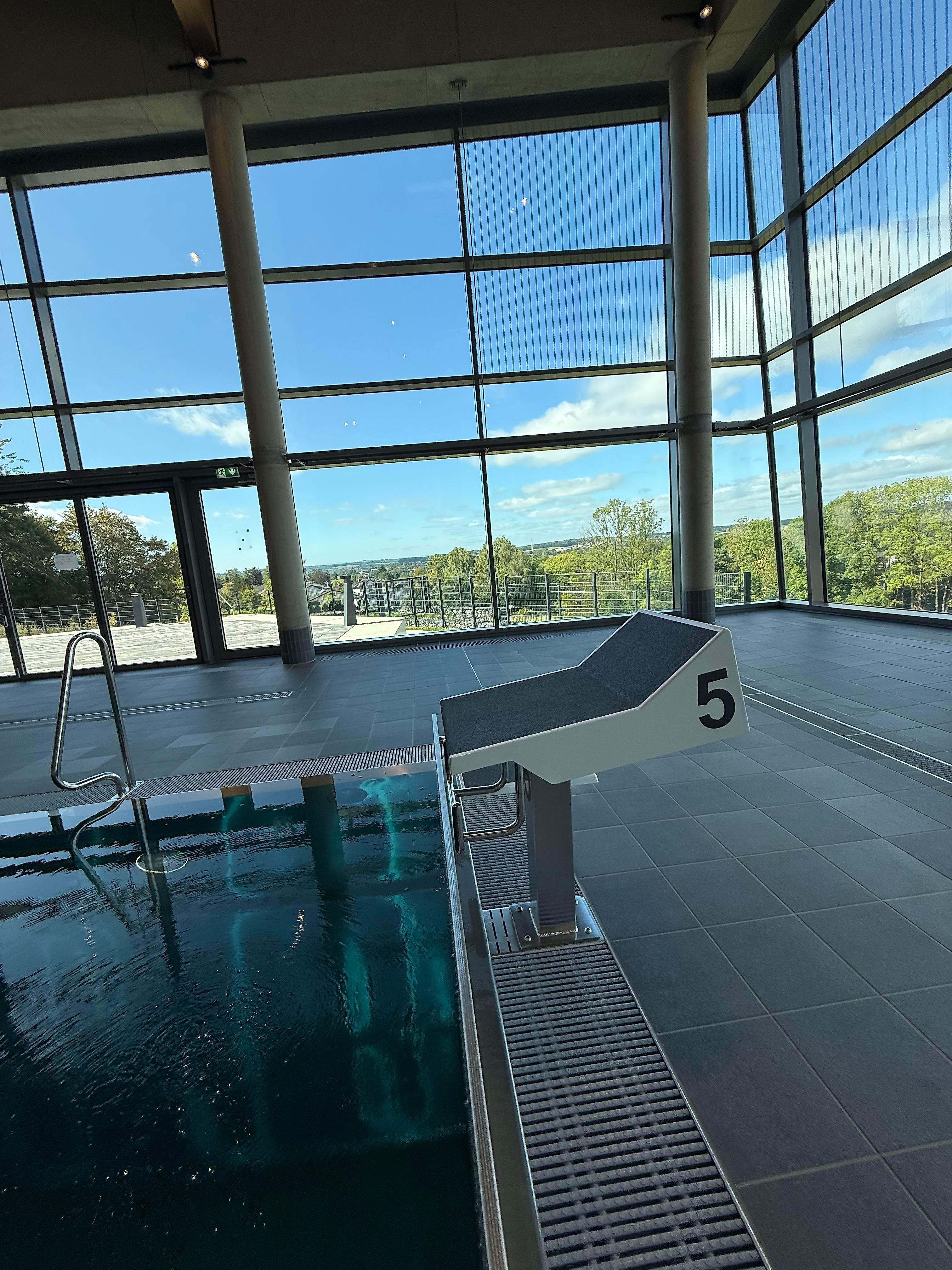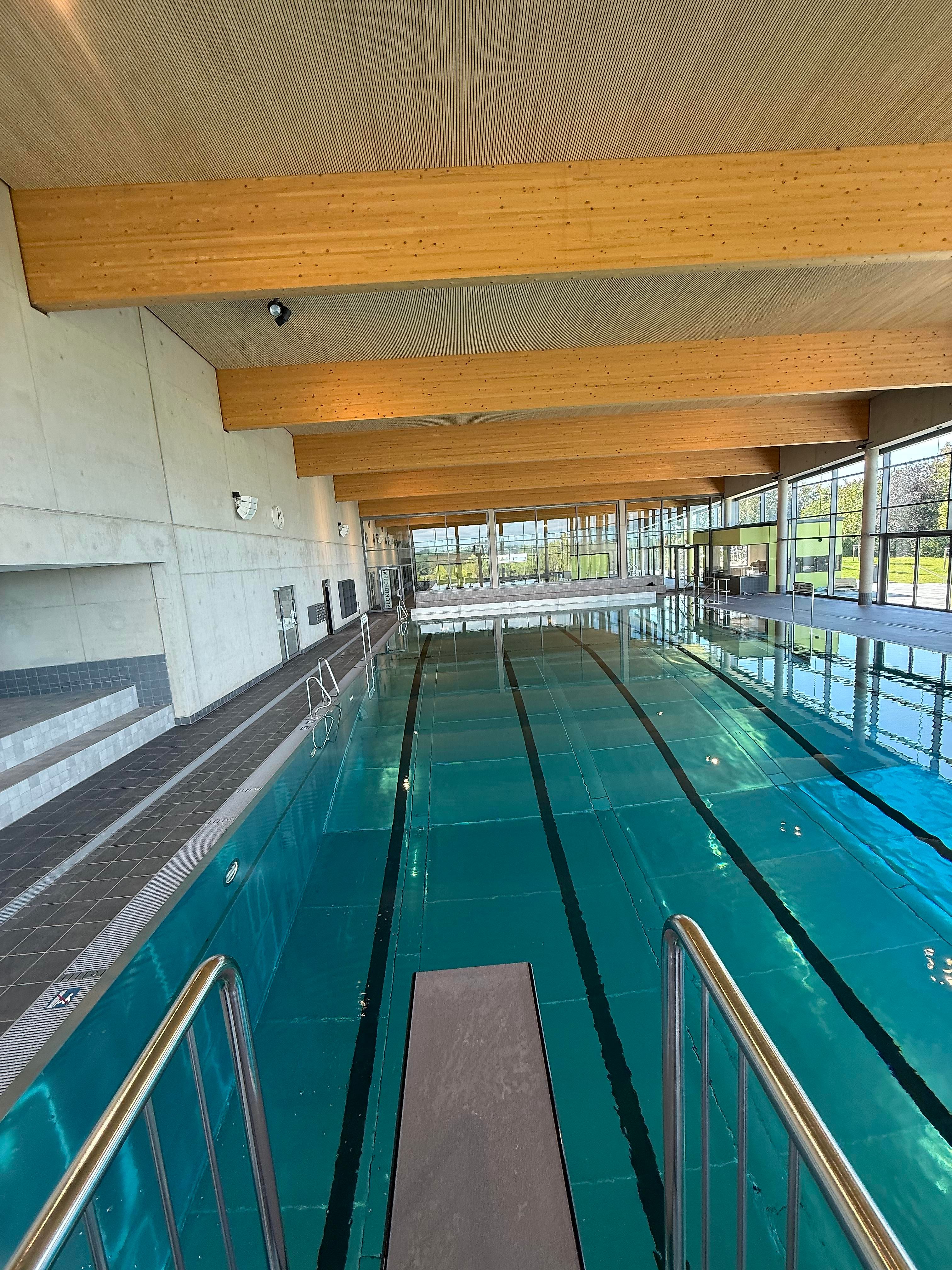 Het nieuwe overdekte zwembad beschikt over een sportbad met vijf banen van 25 meter, een springplank van één meter en een platform van drie meter. Het aanbod wordt aangevuld met een multifunctioneel bad en een apart peuterbad voor kinderen. Een ruim te openen glazen gevel biedt in de zomermaanden directe toegang tot het ligveld en het terras, dat bij mooi weer uitnodigt tot ontspanning.