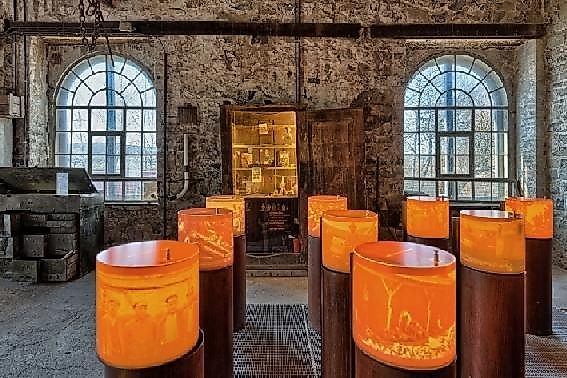 Historische workshop ervaring kamer De Alte Schmiede is een heel bijzonder gebouw. In de 20e eeuw was het het hart van het bedrijf en vandaag de dag, na de gevoelige, historische renovatie, is het weer een juweel met een belevingskarakter. Op een tentoonstellingsruimte van ongeveer 325 vierkante meter wordt de industriële geschiedenis tot leven gebracht en kan deze op veel verschillende stations worden begrepen. Deuren en kasten nodigen uit om ze te openen en de pratende vuilnisbak vertelt menigeen een episode. En dit is waar men graag (soms privé) feestviert of naar een concert op zaterdag luistert.