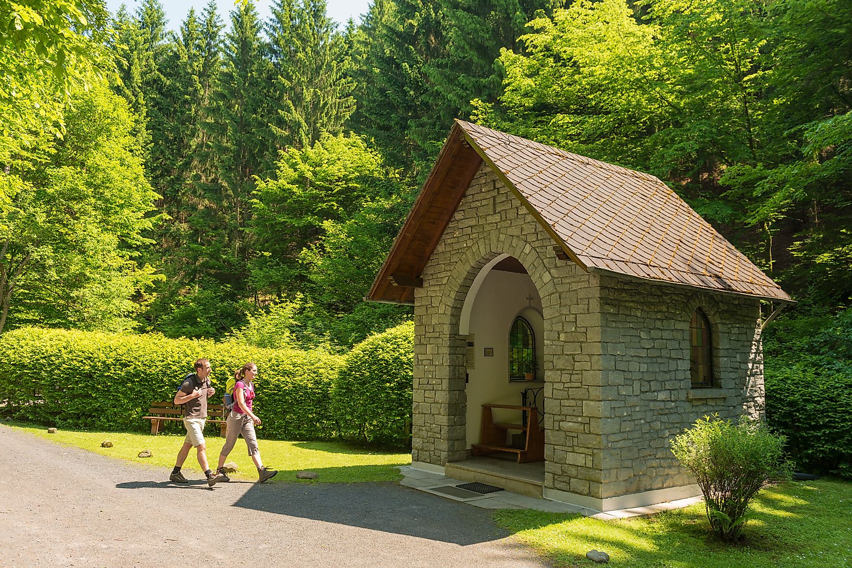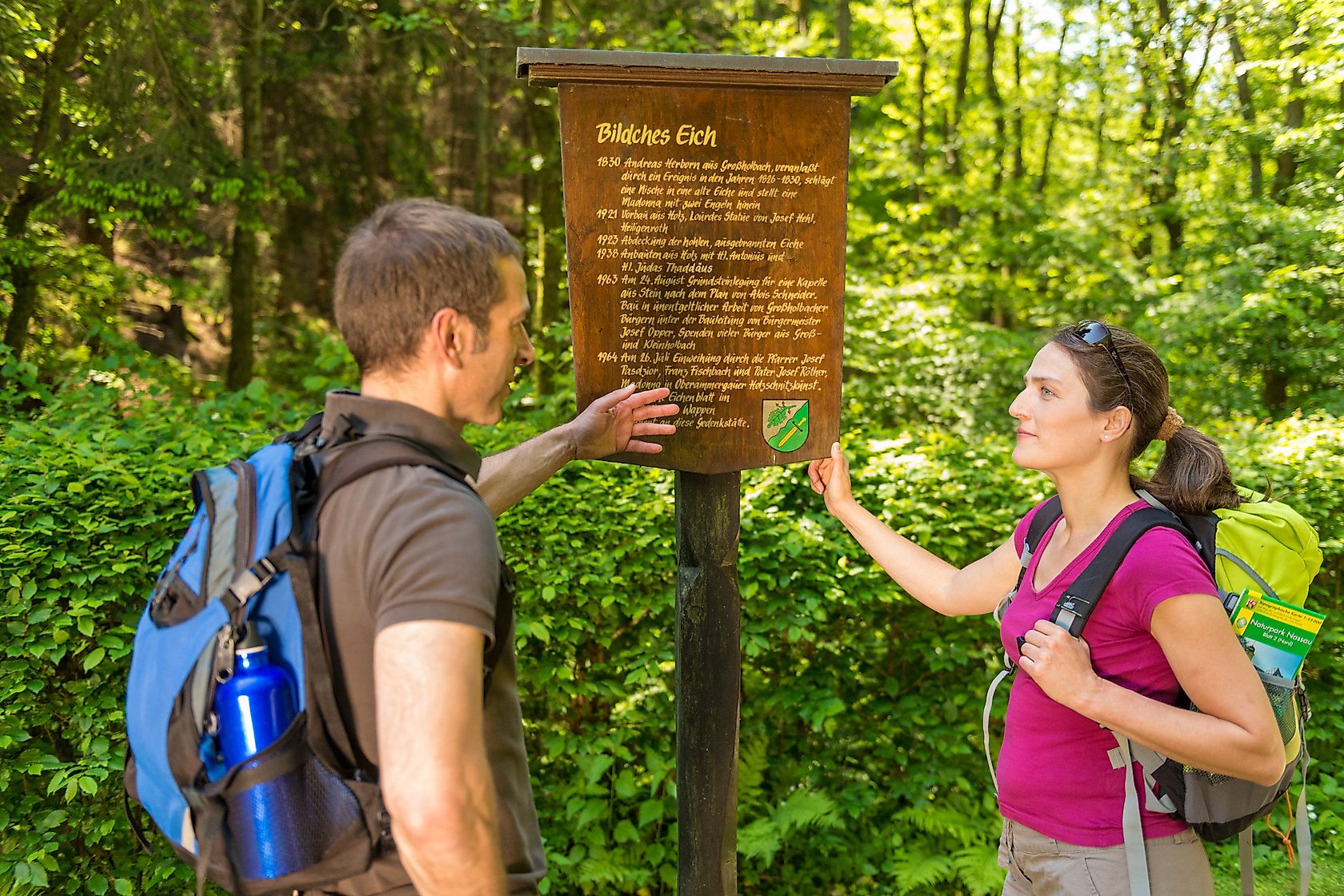 Ten noordwesten van Nomborn in het Eisenbachtal ligt een prachtige route met onmiskenbare recreatieve kwaliteiten. Bos en water zorgen hier voor een aangenaam microklimaat, vooral op warme dagen. Na de start op de wandelparkeerplaats van de Studentenmühle leidt de route langs de Eisenbach door schaduwrijke bossen naar de "Bildches Eich". Hier wachten een kleine boskapel uit 1963 en een uitgeholde eik met een Mariabeeld uit 1830 op de wandelaar. Terug langs de Holbach, waar twee molens u uitnodigen om uit te rusten aan het einde van de rondweg.